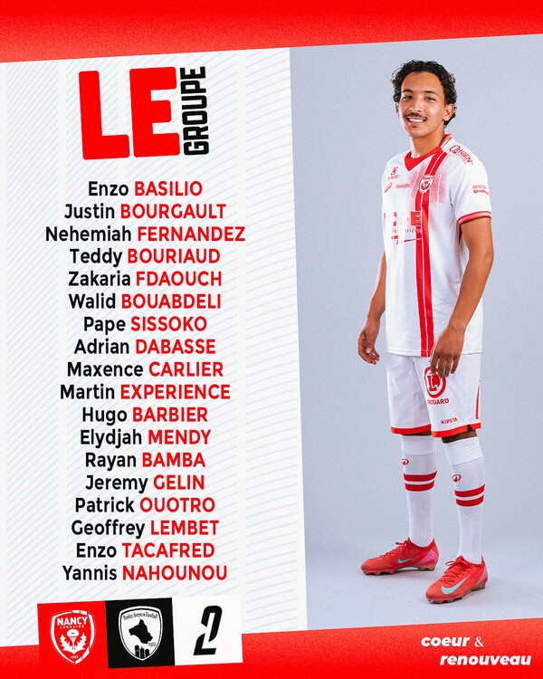 Les 18 Nancéiens pour le match face à Rodez ! 👊🔴⚪️